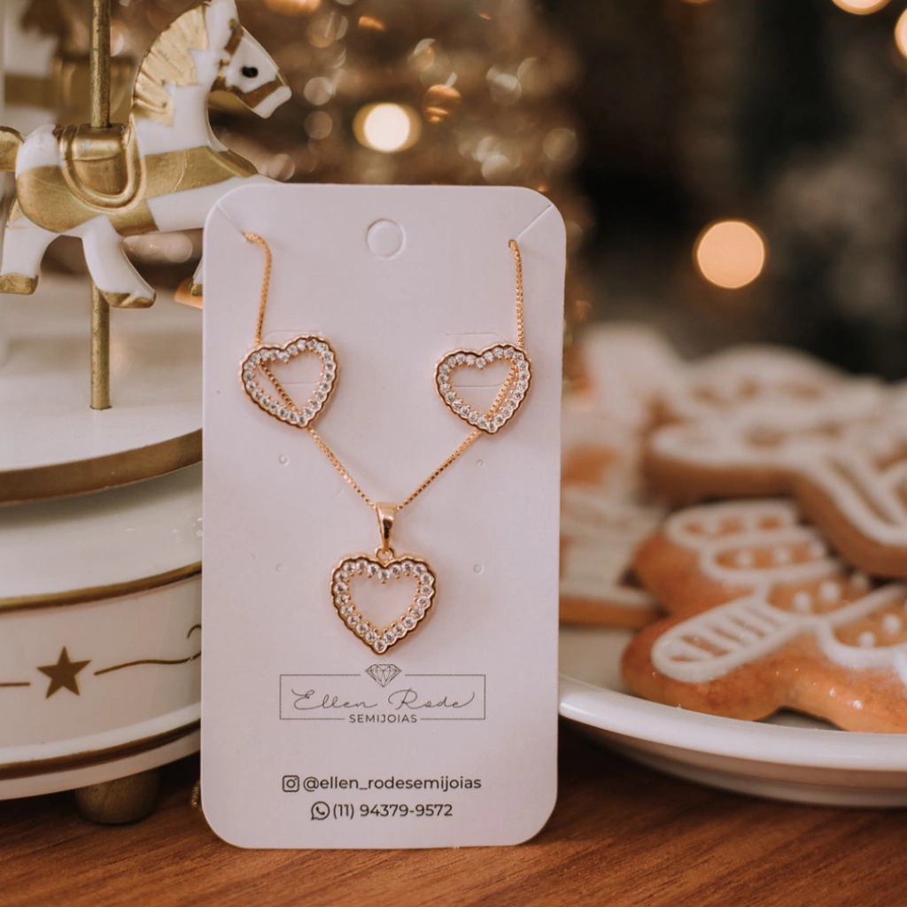 O Conjunto Coração Cravejado é a escolha perfeita para quem busca delicadeza, brilho e romantismo em uma única peça. Com design em formato de coração e pedras cuidadosamente cravejadas, o conjunto transmite elegância, sofisticação e um toque de feminilidade.