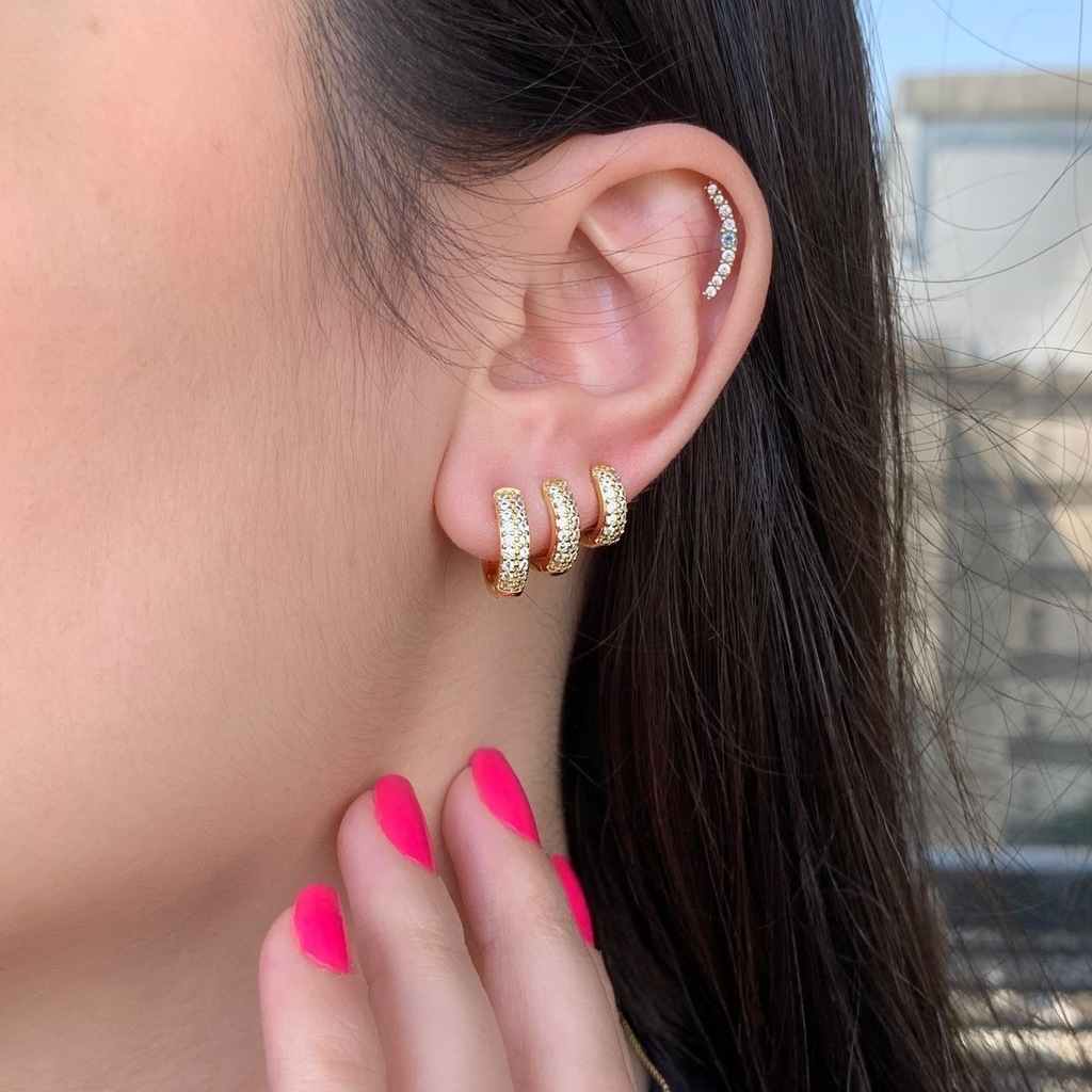 O mais queridinho e desejado por aqui, nosso trio de argolinhas cravejdas, além de lindo é também uma joia versátil que vai bem com qualquer look. Sem dúvidas uma peça leve edelicada que faz toda diferença e excelente opção para presentear alguém amado.